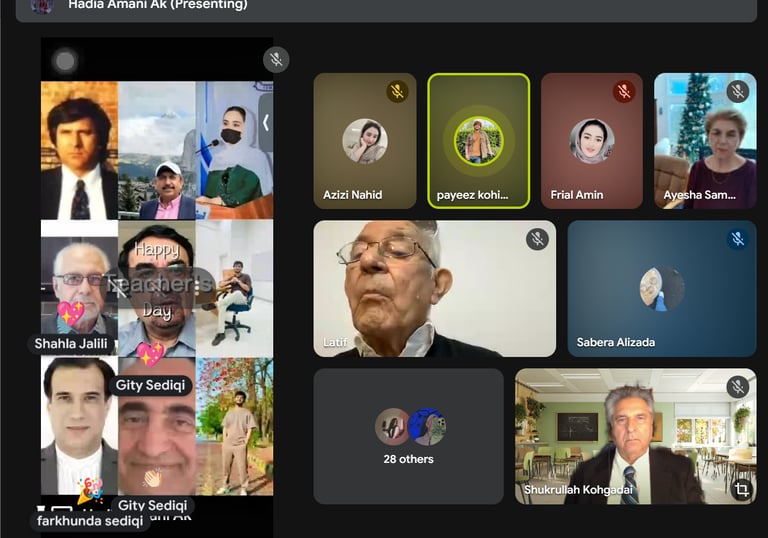 دراین محفل پرشکوه بزرگداشت از مقام والای معلم, به همه آموزگاران فرازمند سرزمین تسلیم داده شده به سیاه دیوهای اهریمن صفت و به اسارت کشیده شدۀ افغانستان, ادای احترام می نماییم وبه ویژه به استاد دانشمند مان استاد عبدالطیف خان پیروز رستم زاده و بانوان آموزگار عزیزمان چون: